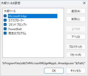 ダイアログ ボックス:外部ツールの設定