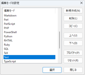 [編集モードの設定] ダイアログ ボックス