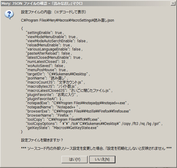 var strTitle = "Mery: JSON ファイルの初期化 - 「読みなおし」マクロ";